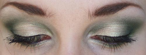 Eyes: MAC Bare Canvas, Sephora Green Eyes Palette, black kohl, L'Oréal Voluminous WP
